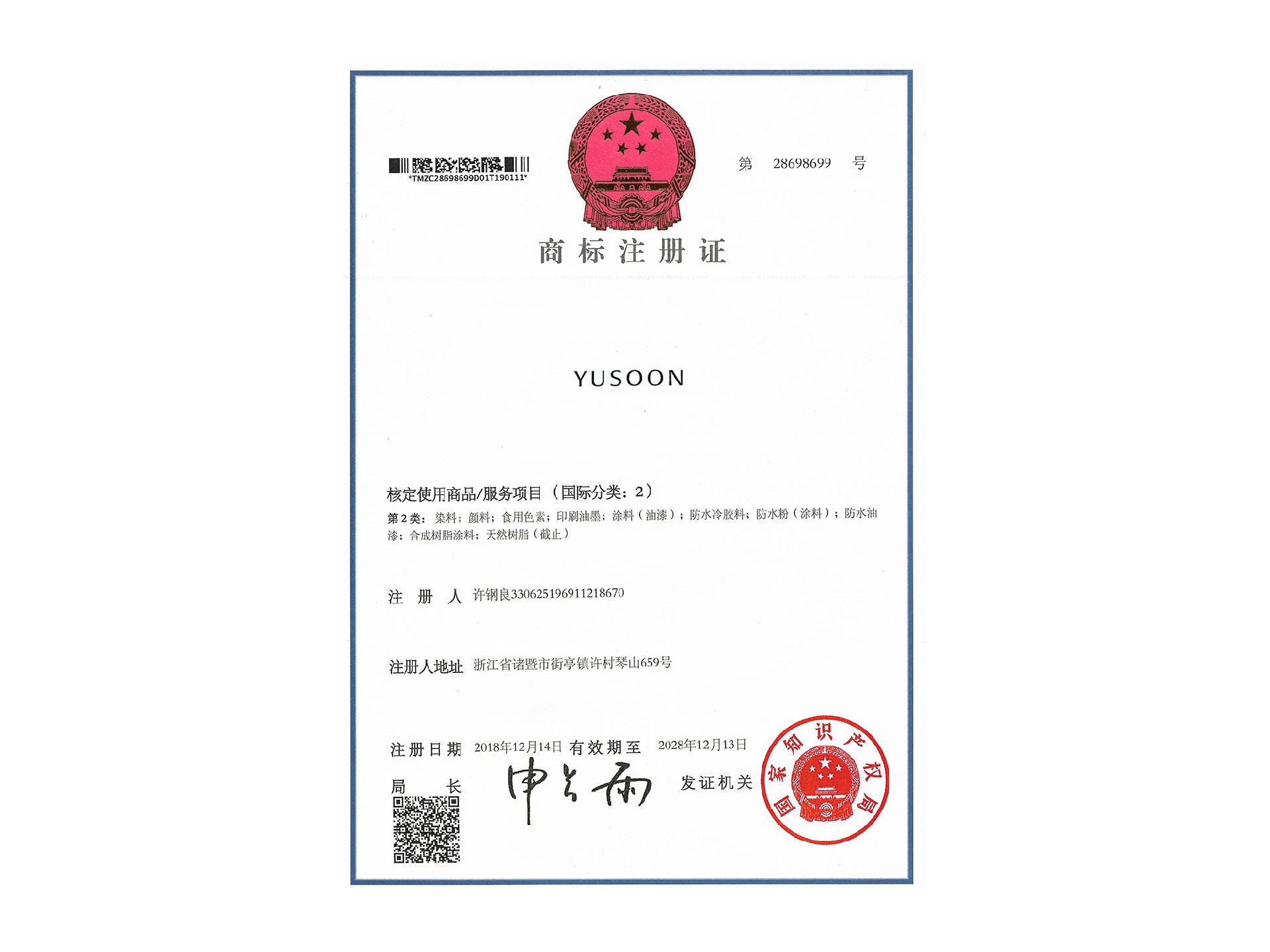 商標(biāo)證書